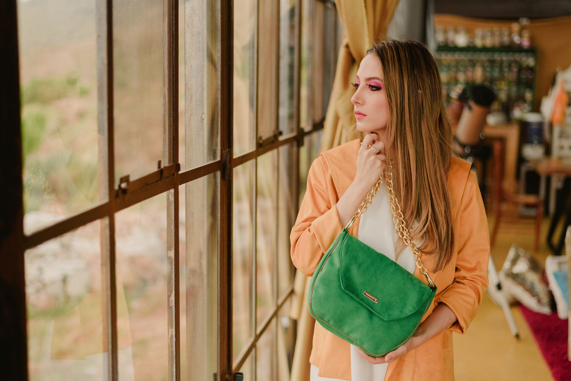 Modelo Remedios. Tipo de bolsa clutch al hombro.